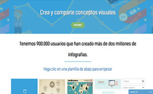 Sirve para la creación de infografías. Es de uso gratuito, aunque también hay una versión que tiene costo y permite el acceso a mayores recursos de diseño.