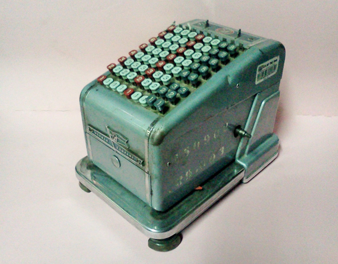 Máquina usada para efectuar cálculos aritméticos. Esta herramienta fue utilizada cotidianamente en las oficinas de los talleres* ferroviarios y en las oficinas administrativas donde se llevaba la contabilidad.