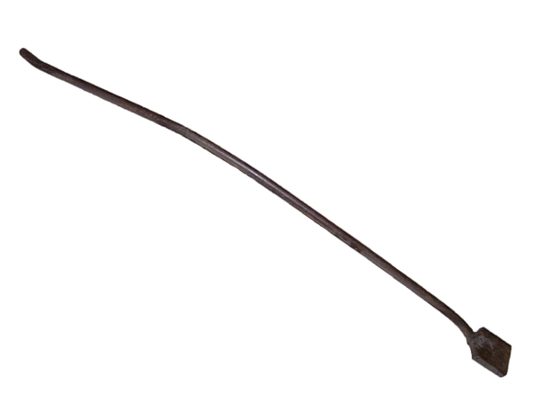 Barra metálica con un extremo en forma de paleta que es utilizada por los reparadores de vía*, a manera de palanca, para levantar los durmientes* y poder sacar o meter balasto* en su parte inferior y nivelarlos.