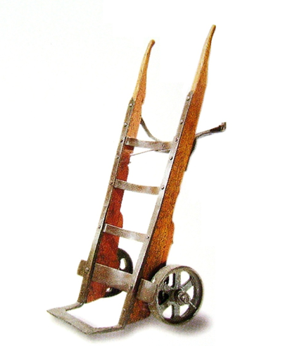 Carro metálico de mano con dos ruedas en el que se transportaban paquetes durante labores de carga o descarga de carros* de express*.