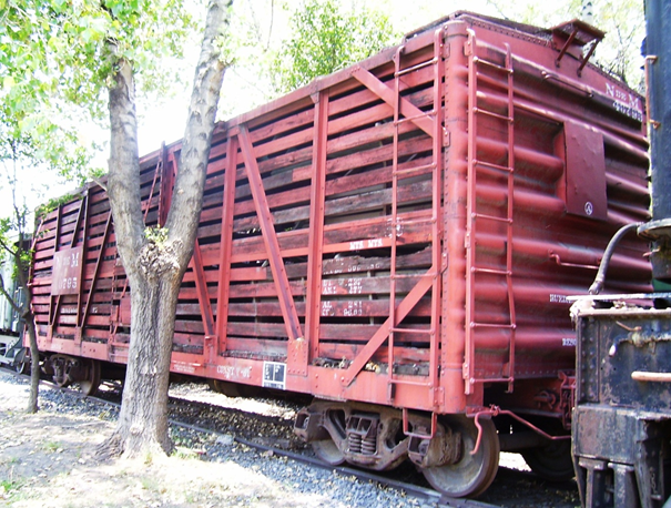 Carro* de carga para el transporte de ganado en pie, equipado con techo, costados y puertas laterales de rejas, de un solo piso, piso doble o de tres pisos; con o sin comederos o abrevaderos.