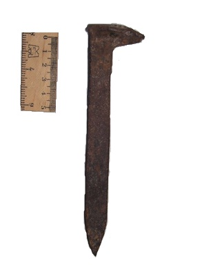 Barra afilada en uno de sus extremos y que en el otro tiene una cabeza alargada hacia un lado, que se apoya sobre el patín* del riel*. Los clavos de vía* sirven para evitar que los rieles* se volteen o se abran y para mantener el escantillón* correcto.
