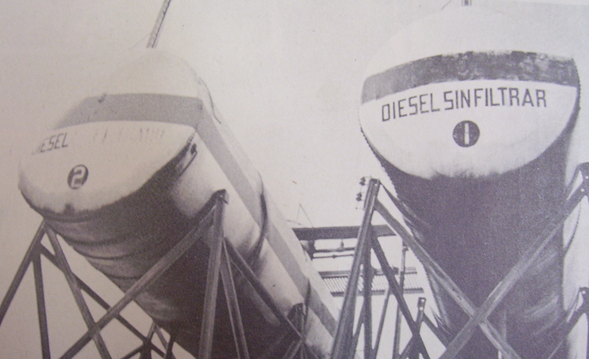 En los tiempos del vapor algunos carros* de servicio como las grúas de auxilio* contaban con caldera vertical que a su lado tenía contenedores* de agua y combustible*.