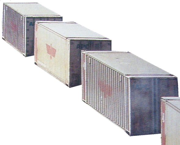 Grandes cajas metálicas, sin ruedas, que colocadas en: aviones, barcos, tráilers carreteros o carros plataforma* y carros góndola* ferroviarios, se utilizan para transportar carga. Los hay de 20 y 40 pies de largo.