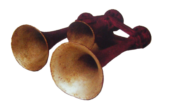 Instrumento acústico que llevan las locomotoras diésel–eléctricas* y que al recibir aire a presión, emite sonidos que anuncian las salidas y llegadas del tren* o su paso por puentes* y cruces* de camino, entre otros.