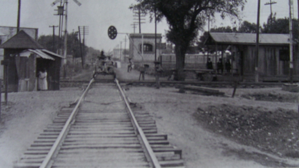 Intersección de una vía* férrea con uno o más caminos, o con una corriente de agua.
