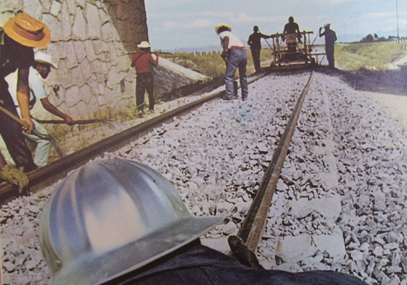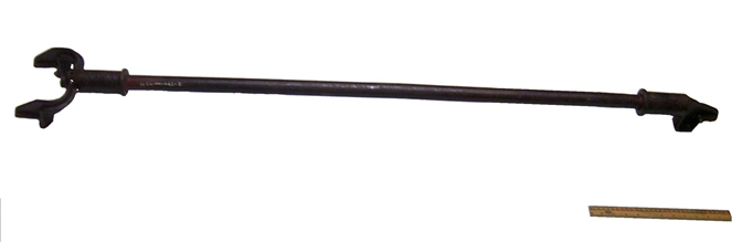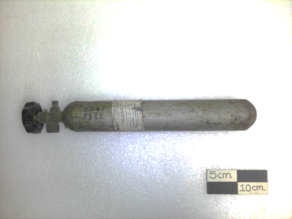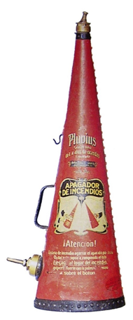 Este pequeño extintor forma parte de las diversas clases de equipo contra incendios que se ponía a disposición de los trabajadores ferrocarrileros. Hecho de un metal pesado, y de corta longitud, en la parte superior tiene una llave que al abrirse expulsaba la sustancia que apagaba el fuego.