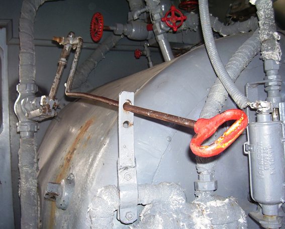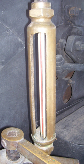 Artefacto que indica el nivel del agua contenida en el interior de la caldera* de locomotoras de tracción a vapor*.