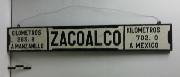 Letrero de madera con letras negras escritas sobre fondo blanco que se colocaba en la fachada de cada una de las estaciones de los Ferrocarriles* Nacionales de México. En él se indicaba el nombre de la estación* en cuestión y se señalaba la distancia en kilómetros a las terminales de la línea férrea* correspondiente.