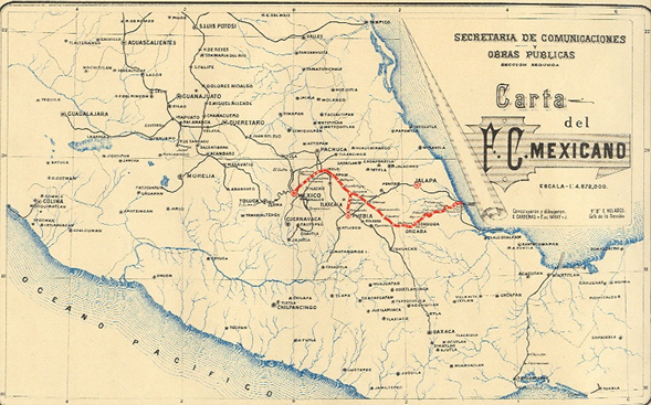 Línea troncal* del antiguo Ferrocarril Mexicano y ramal* a Puebla (SCOP, 1895).