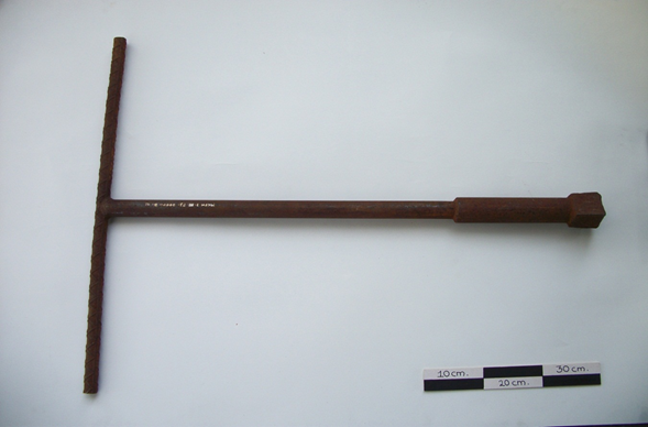 Llave con el mango en forma de letra T, se utiliza para apretar y aflojar tuercas* y tornillos*. Las cuadrillas* de reparadores de vía* utilizan frecuentemente esta herramienta. Puede ser operada con ambas manos por un solo hombre o por dos hombres, uno por cada extremo.