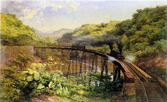 El invento del ferrocarril en el siglo XIX significó un parteaguas en la modernidad, referida al progreso y desarrollo tecnológico. Este nuevo artefacto cambió las nociones de movimiento, velocidad, distancia y técnica que hasta entonces se conocían. En México, el ferrocarril impactó de manera significativa a la sociedad y a la cultura y encontró en el arte su mejor vía de expresión. Numerosos artistas con sus respectivas corrientes y técnicas representaron a los trenes en escenas políticas, económicas, sociales, tecnológicas, estéticas e históricas. En un recorrido veloz por las artes plásticas y la fotografía encontramos óleos sobre tela, grabados, murales, litografías, dibujos, fotografías y fotomontajes que hablan de las representaciones sociales y artísticas en torno al ferrocarril. Se trata de un compendio de obras artísticas de los principales exponentes mexicanos del arte, así tenemos a Velasco, Murillo, Rómulo, Rivera, Quezada; pasando por Castro, Escalante, Posada, Díaz de León, Méndez, Zalce, Pruneda, los Hermanos Mayo y Casasola, entre muchos otros. A continuación te presentamos algunos ejemplos representativos del ferrocarril en el arte.